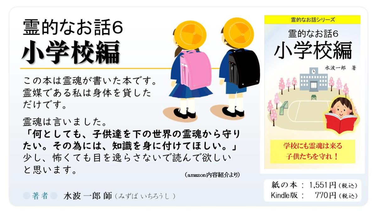 170df941b49db926eac5188df81b6024 投稿日: 2025年3月9日 | 1200 × 675 | 『霊的なお話6-小学校編』を拝読して 共有: Facebook で共有 (新しいウィンドウで開きます) Facebook 友達にメールでリンクを送信 (新しいウィンドウで開きます) メールアドレス X で共有 (新しいウィンドウで開きます) X いいね:いいね 読み込み中…